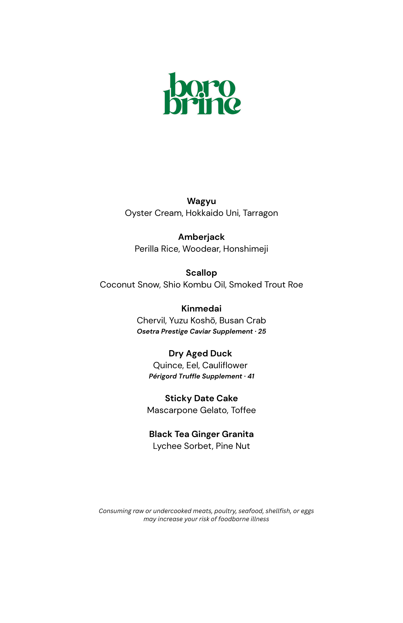 Our tasting menu is a seafood-forward journey inspired by the flavors, neighborhoods, and energy of New York City. Designed to flow from raw and briny beginnings to warm, comforting finales, each course highlights seasonal seafood (+ meat), thoughtful sourcing, and refined technique — with playful nods to nostalgia along the way.